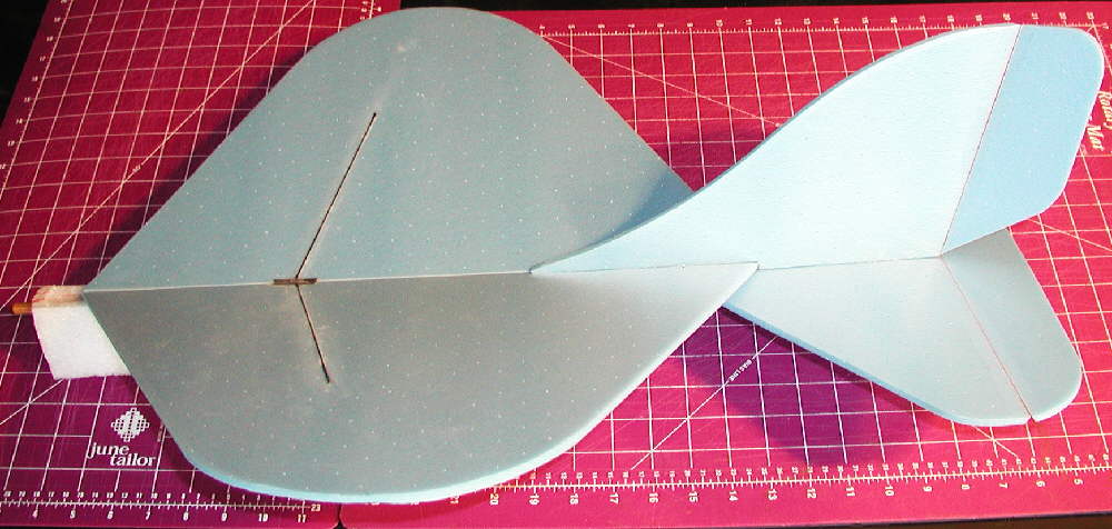 Even though the span is only 23-1/2, I went with high dihedral for fast rudder response, & it paid off well.