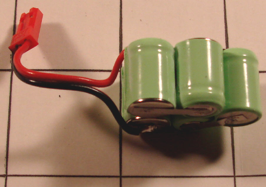 By using 5 cells from a NiMH 9 volt 'transistor' battery, the weight of the lighting battery could be reduced even further to about 3/4 ounce, and the size of the battery pack can be reduced. The Turnigy NiMH '9 volt transistor' battery, available from http://www.allelectronics.com, is rated at 250 mAH- this offers good energy density in a lightweight cell. The pale green covered BP battery shown in the photo below is rated at 220 mAH. I bought this battery from http://www.circuitspecialists.com