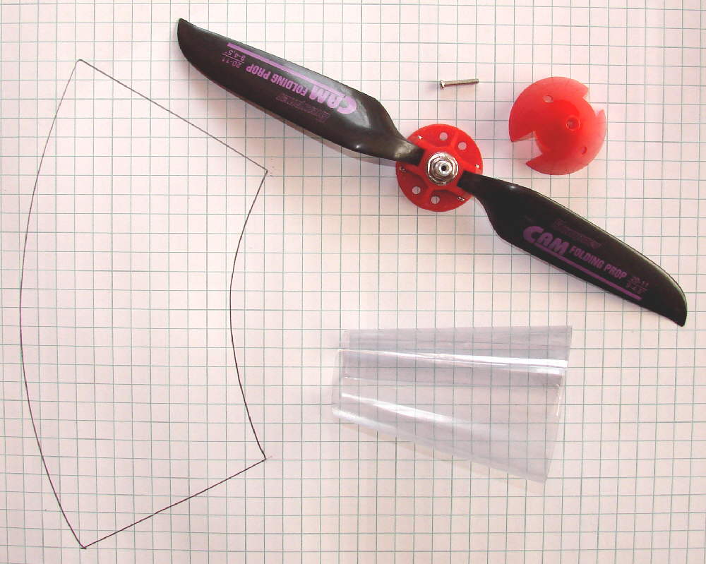 Above: Folding propellers : During my first test flight, I had the impression that the motor really wasn't loaded very heavily. A test with the Wattmeter later confirmed this; the current draw on the 2S 900 ABF pack was only 5.8 Amps. I started thinking about propping up- increasing the blade pitch.