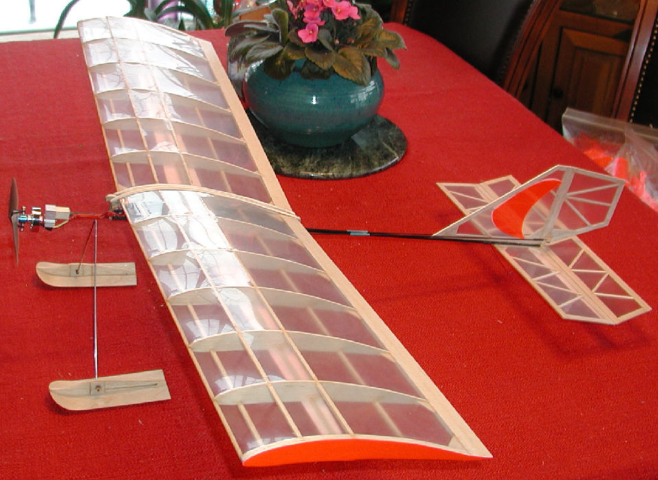 Materials Of Construction: Balsa for wing and tailgroup structure; 1/8" hardwood dowel for the wing's leading edge
