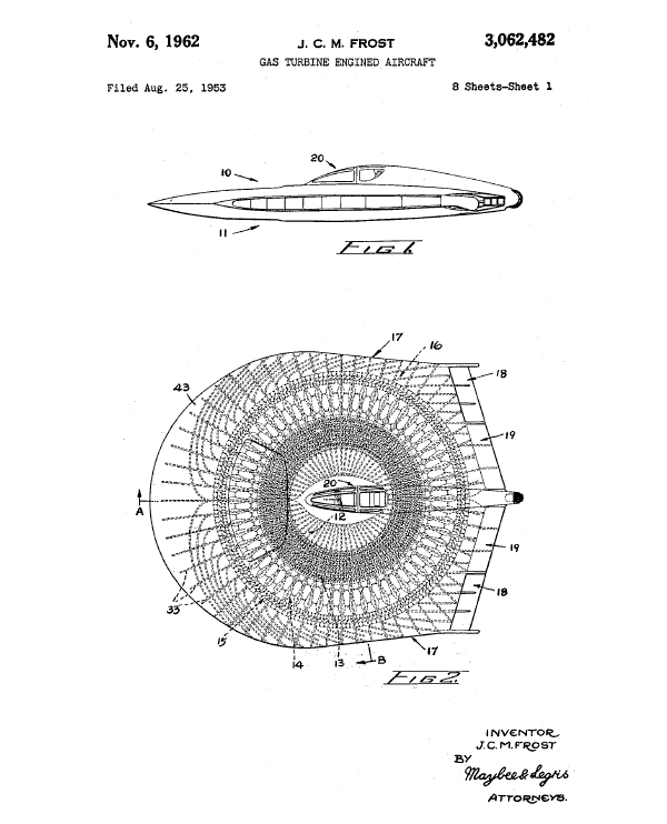 By the way, I'm under the impression that the "Project Y" designation covered earlier designs, before the US Air Force funding was dropped in 1961, and the facility in Canada closed. The AVRO CAR, the hovercraft design, was a part of Project Y. The November 1962 Patent application by John Frost would, however, not have been a part of A.V. Roe's "Project Y"... it would have been a later design generation independently created by John Frost after that project had been closed down for about a year.