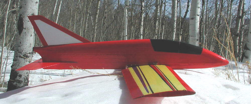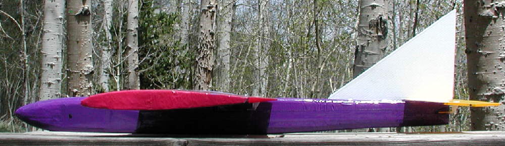 I also kept the wing tip profiles full-chord rather than following the sugestion to round them, wanting every square inch of wing area. At 21.5 ounces with 3 square feet of area, this JW is flying at a wing loading of just over 7 ounces per square foot, allowing for very good handling at low speeds & in lighter lift conditions- a good approach in our thinner high altitude air. Ballasting weight will be temporarily taped in palce on the belly when desired for high wind conditions as needed.