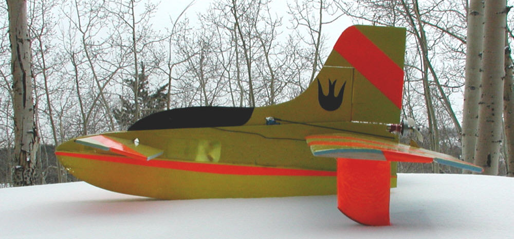A rudder is really necessary for good water handling & snow flying, so I incorporated a large counterbalanced one.