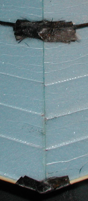 [Above] Finished result: Carbon fiber tow in place with foam-safe CyA on the center C.F. tubular spars, and on the bamboo leading edge spars' joint... plenty of strength for a <11 ounce bird!