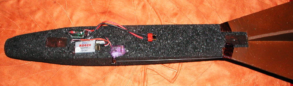 The ESC & wires are inset in the EPP foam for minimum drag.