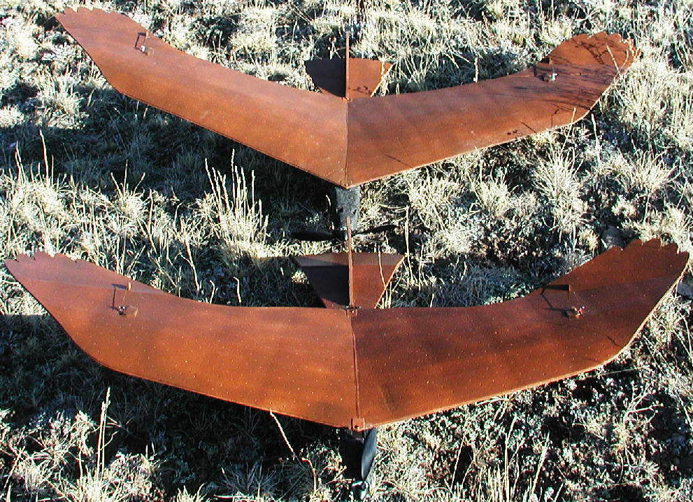 [Above] Second tail with vertical stabilizer members was built to test fly in gusty wind conditions; it offers improved stability.