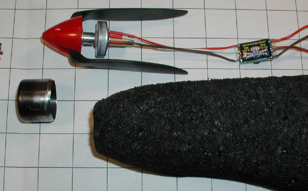 [Above] Motor temporarily in place; top hatch block of EPP will have motor cooling air exit vents, wire channels