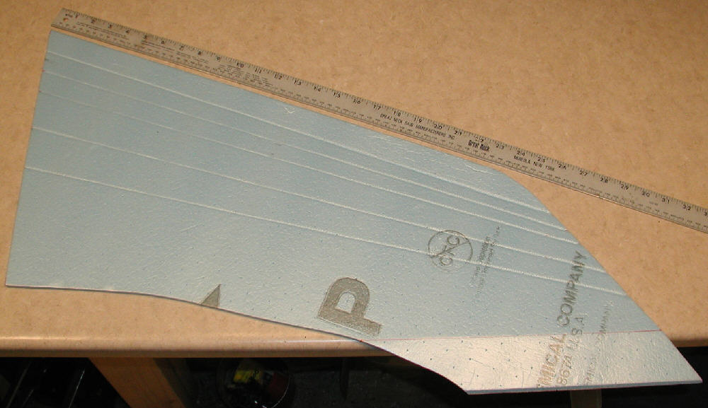 [ABOVE:] Wing tip modifications; 47" wing template / plan
