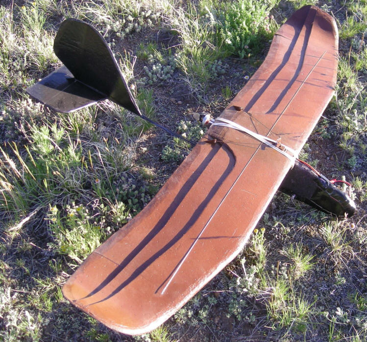 Above: Results after the extra two layers of Bluecor PP were carved away from the upswept portion of the wing tips. The improvement in both glide efficiency and flight stabiliy are nothing short of amazing!