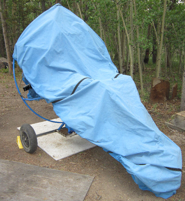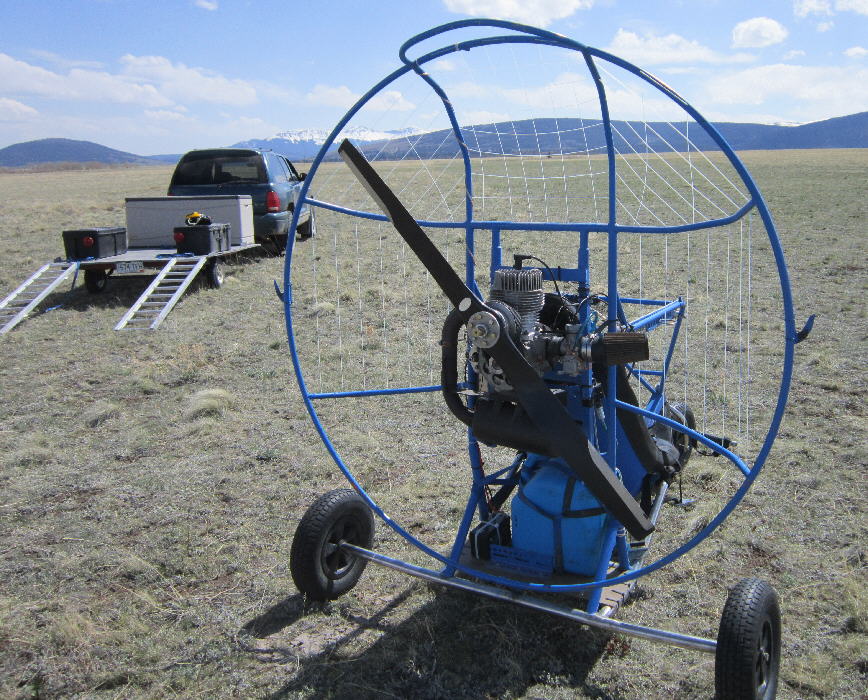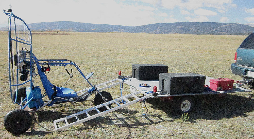 Here's the Bluehawk at Antelope Flats in early October of 2012, ready to load back on the trailer. There's up to 800' of groomed takeoff / landing area in the primary north-south direction across this ~15 acre open aerodrome, with lots of off-aerodrome landing areas available here on the NW fringe of South Park.