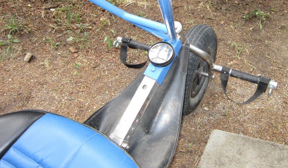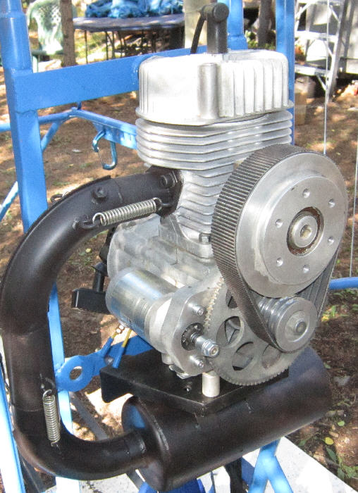 After all of these modifications & upgrades, the 'Bluehawk' Trike weighs in at ~200 pounds with the fuel tank empty. (With the later upgrade to the larger tires & the change to a lighter starting battery, , the weight increased to around 210#)