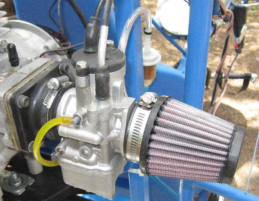 [Above:] The Dellorto PHBE 34 BD 34mm throat carburetor is the one recommended by the U.S. Hirth importer / distributor. I have more recently been testing with one of these carburetors, trying different main and pilot jets to get the bet performance from this upgrade Hirth F33B engine.