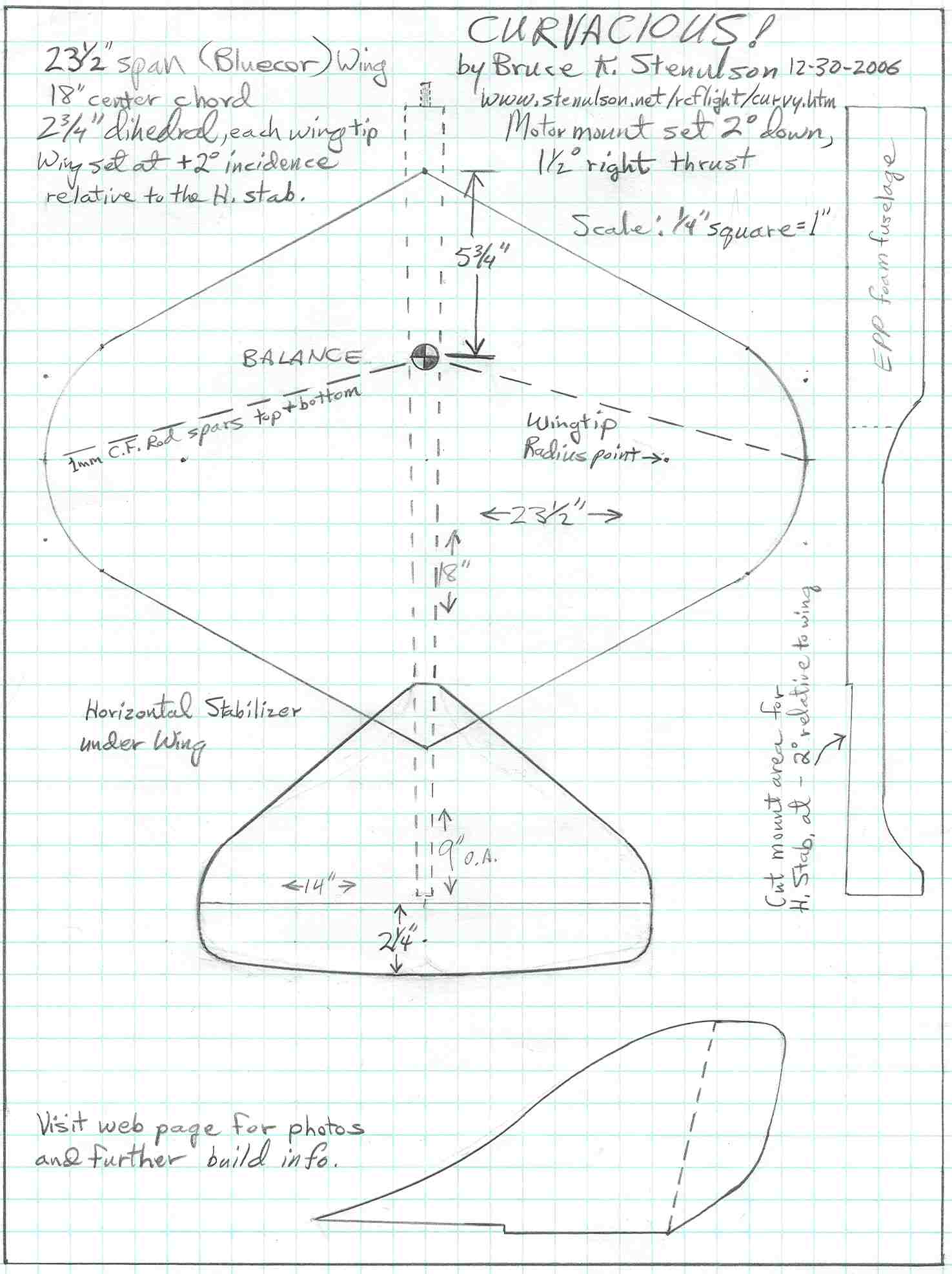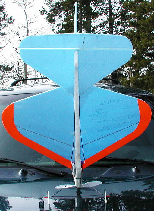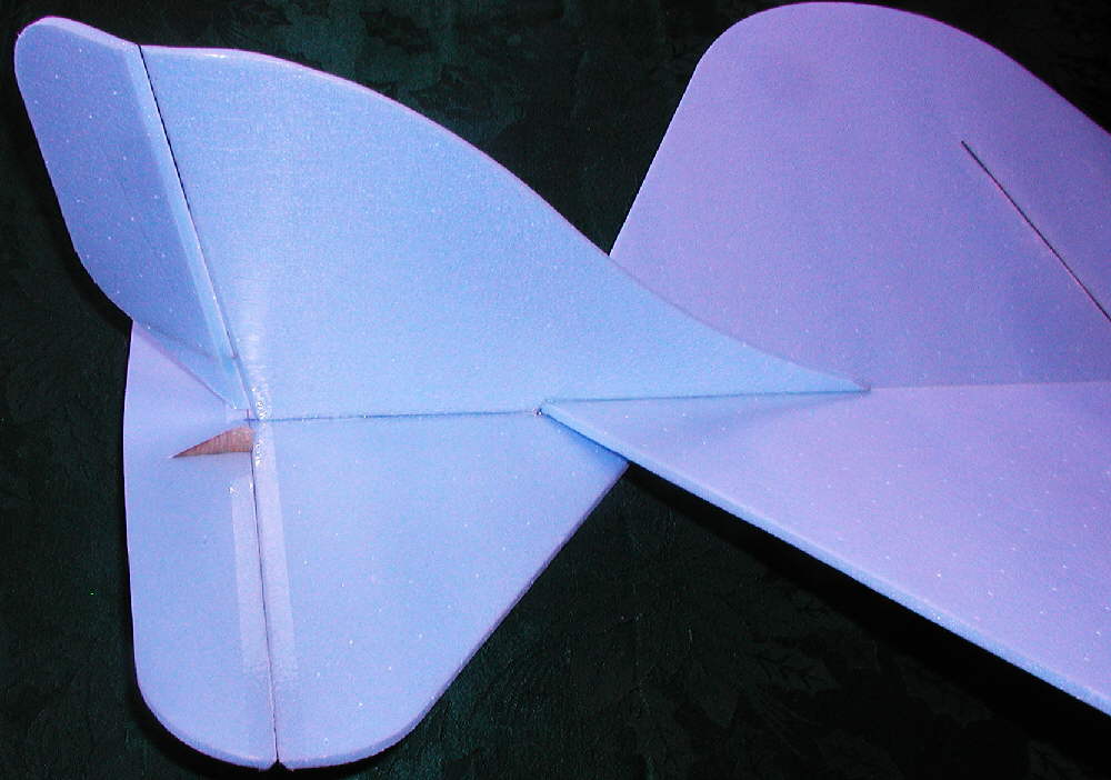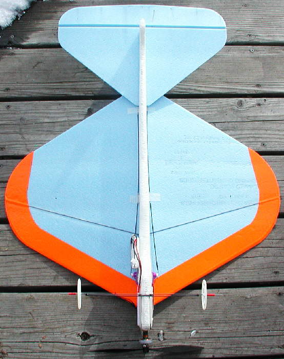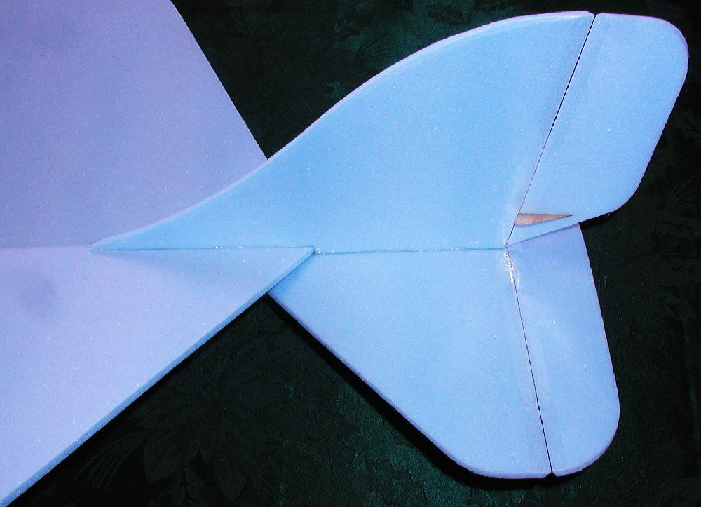 Even though the span is only 23-1/2, I went with high dihedral for fast rudder response, & it paid off well.