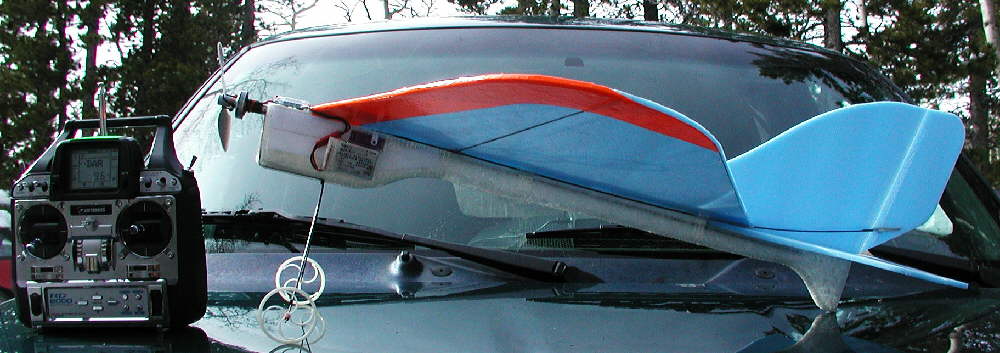 [NOTE]: I'm suspecting that I built in more down thrust than needed... how much is too much on a flat plate? I'm at roughly 3-1/2 degrees, and I'm now thinking, (after flying CURVACIOUS all afternoon & doing over 50 takeoffs & landings from the narrow snowpacked road in front of my house) that 1-1/2 to 2 degrees of downthrust might be better for high speed flying- and maybe for all around handling.
