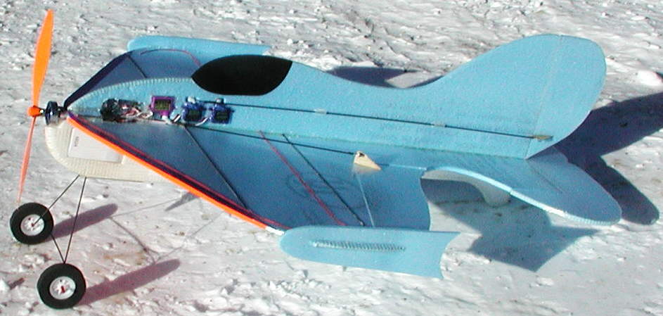 The EPP fuselage has the tail skid incorporated into it for all-terrain handling durability. The battery compartment has clear plastic covers for the remainder of the winter flying season; for warm weather flying, the solid covers will be replaces with vented 'needlepoint mesh' plastic covers for effective battery cooling.