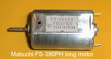 Motor: Mabuchi FS-390PH (4 ounce motor: 1/4" longer than standard 400, flattened sides similar to the '450 turbo')