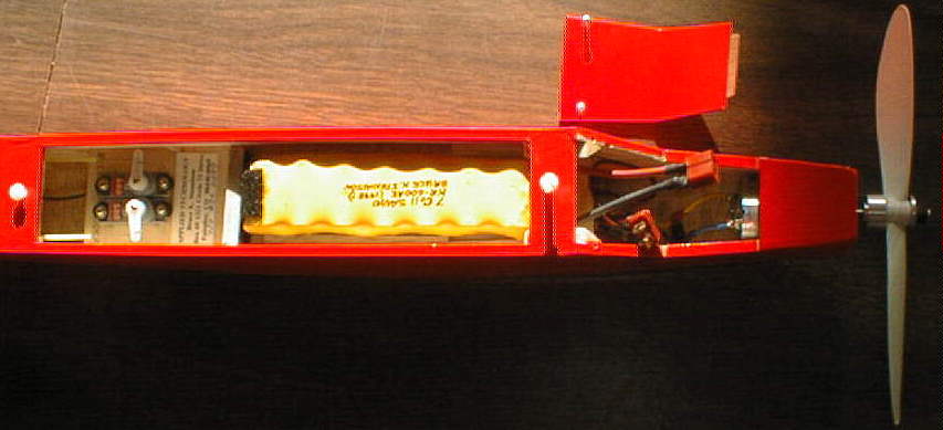 With it's exceptional slow flight capabilities, this should also be an excellent night flyer; a ~1.5 ounce, 20 LED lighting setup should have 40 minutes of 'light time' on it's seperate 6 cell 50mA SANYO battery pack. Visit the Night Flying page for further information on setting up a LED night flying system.