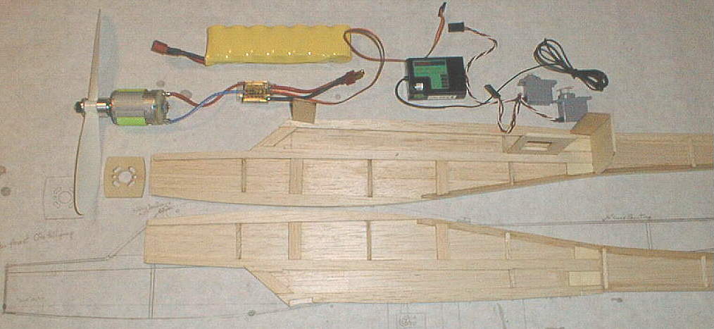 Power System Option: fly with a GWS lightweight Brushless motor and 2 cell LiPoly 1000 mAH battery pack for <15.5 ounce flying weight
