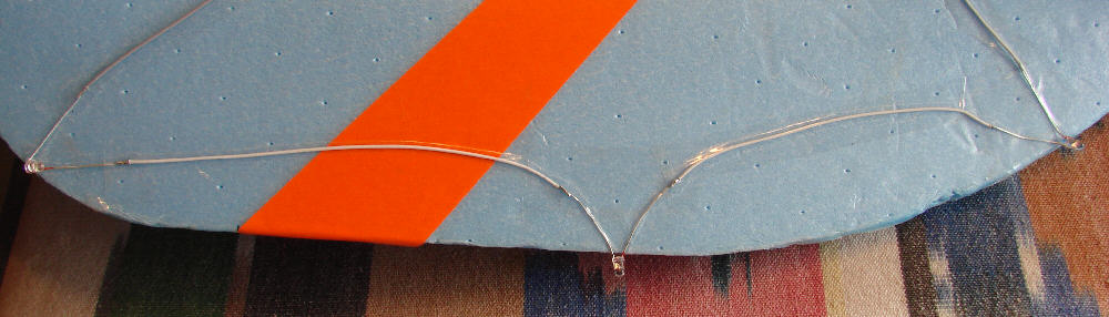 I kept the LED wires full length in most cases, as I could then orient the LEDs in their positions and mount them by simply taping the stiff wire leads in place against the foam wing.