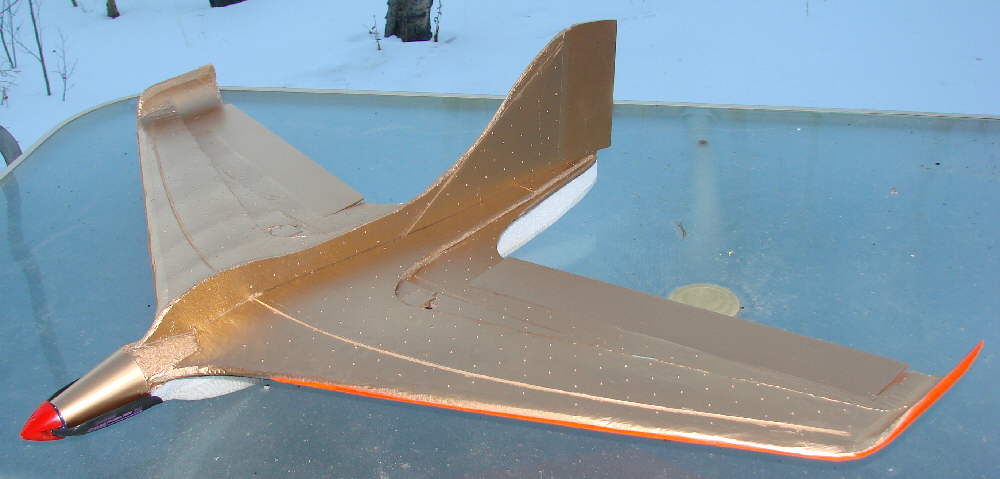 DAW produced an all-EPP slope combat version ; they trimmed domn the scale fuaselage dramaticly to minimize drag. I'm not concerned with imitating any 'scale' side profile appearance; the origional Me163b had a very deep fuselage profile that does not serve my purposes. What I'm designing for is a minimal drag airframe that will perform well in both 'climb-n-glide' thermal performance, as well as for powered slope flying and warmliner aerobatics.