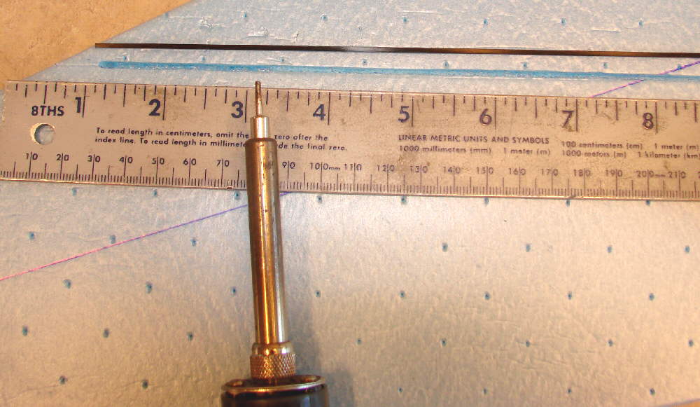 The slots for the lower panel spars are made with an adjustable temperature soldering iron set down to about 300 to 325 degrees F. These CF rod spars are inset flush with the surface, directly above & below each other.