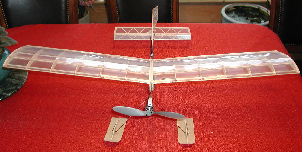 Materials Of Construction: Balsa for wing and tailgroup structure; 1/8" hardwood dowel for the wing's leading edge