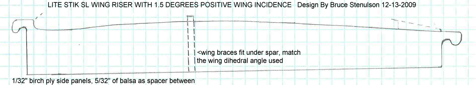 BALANCE / CG FOR THE NACA4408 AIRFOIL WING FOR THE LITE STIK SL IS ON THE MAIN PAIR OF WING SPARS LOCATED ABOVE / BELOW EACH OTHER AT 3-1/8" BACK FROM THE LEADING EDGE, WHICH IS AT ABOUT 38.5% OF CHORD.