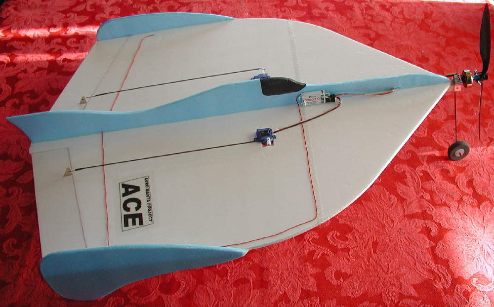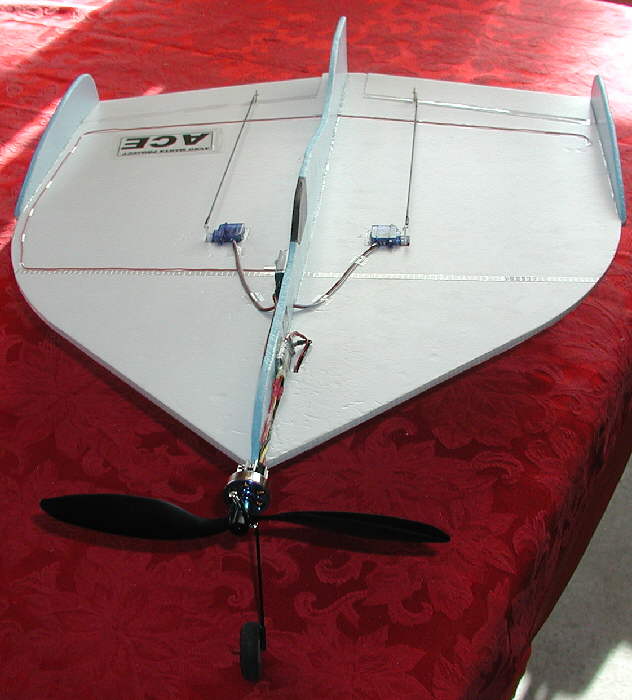 The flight performance, stability, and the aerobatic handling are beyond design expectations; it's a smooth flyer from the rollout and takeoff to the very slow and managable landings. The rolls are very axial. The ACE can be flown nicely in a very limited amount of space, so it should work very well as an indoor flyer.
