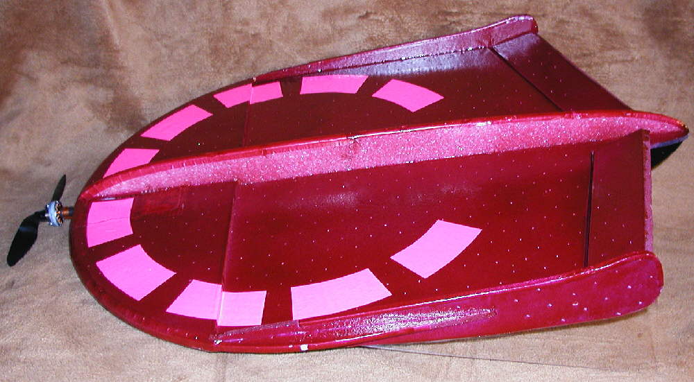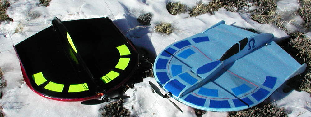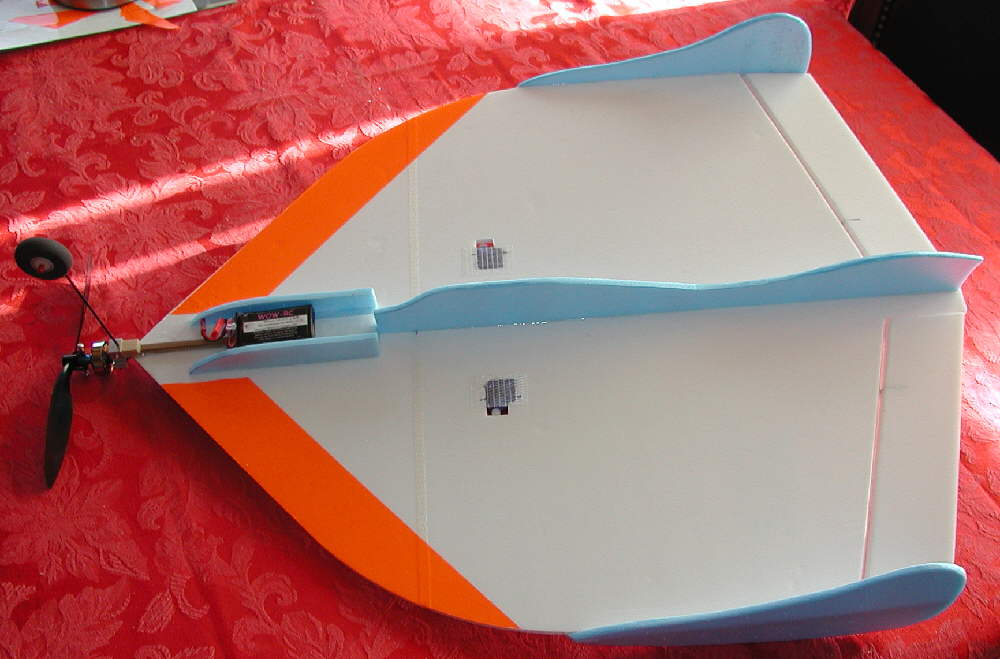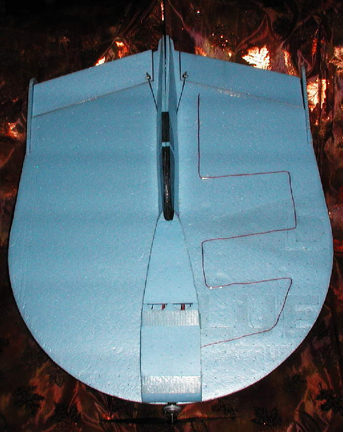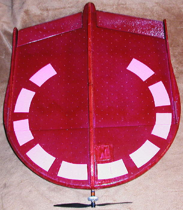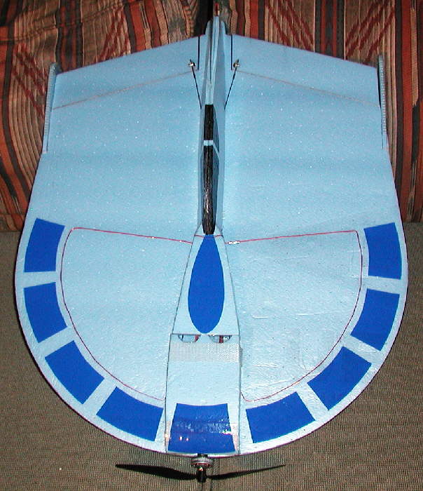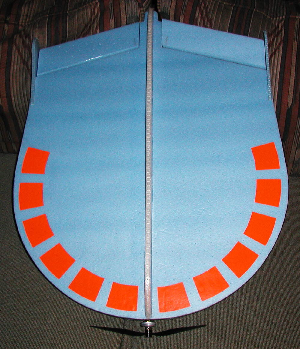 The elevons are sized nicely to provide excellent control. The upper and lower profile fuselages were designed to both add to the visual impression of a "UFO" inspired craft, as well as to contribute to the structural stiffness in the longitudinal direction.