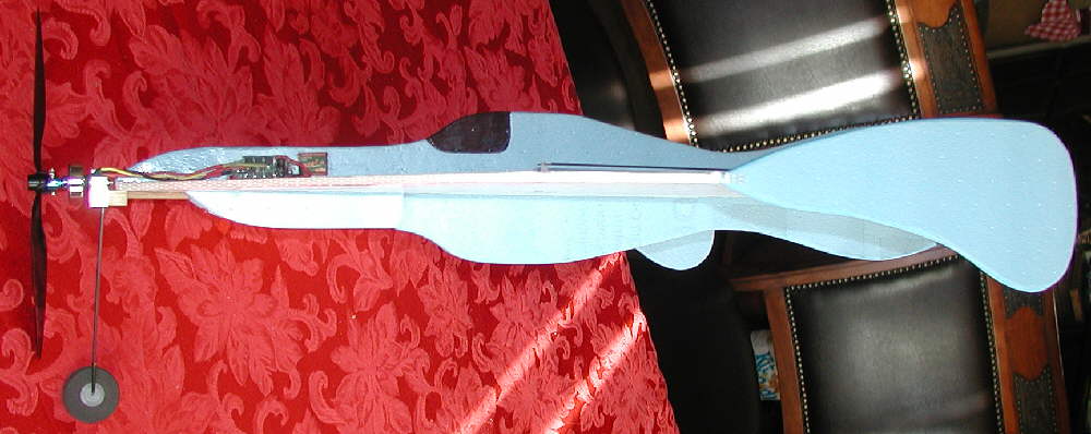 With the balance at this 6.4" back point, there are **NO** hints of the pitch sensitivity which I was still seeing when the balance was at 6.7" back from the leading edge; (this was what GPW had been referring to as a tendancy to "Tuck" when the balance on his was too far back.)