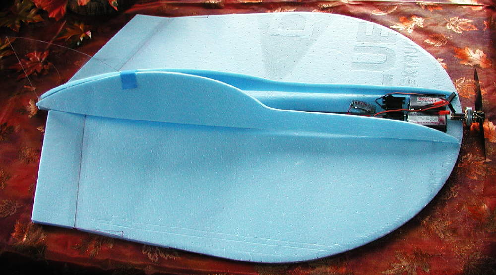 I'm expecting a lot less pitch sensitivity in the second Manta with the thick, rounded three-layer leading edge. The twin tail fins still add a substantial amount of weight far to the rear, so I'll again be installing gear as far forward as I can. I'll hopefully get to installing all of the gear and flying it by the end of the week; (I wound up another identical motor for this one, too, & will use the same battery setup.) I'll post a report of the flight test results.