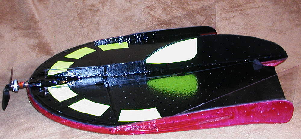 [BELOW]: Top of MANTA, showing the Equipment compartment, cockpit area; vertical fin is VERY clear! (Red wire is the receiver antenna.)