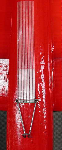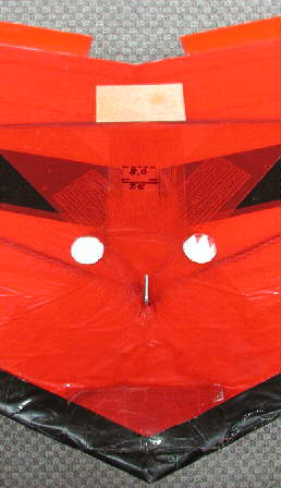 These wing mounting screws also help in quickly mounting my ballast weight for high wind flying conditions; it's a sheet of 1/16" thich lead about 2" wide by 9" long that goes in place on the belly when the winds get up over 25 MPH.