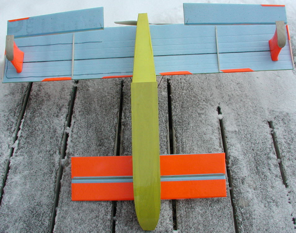 A rudder is really necessary for good water handling & snow flying, so I incorporated a large counterbalanced one.