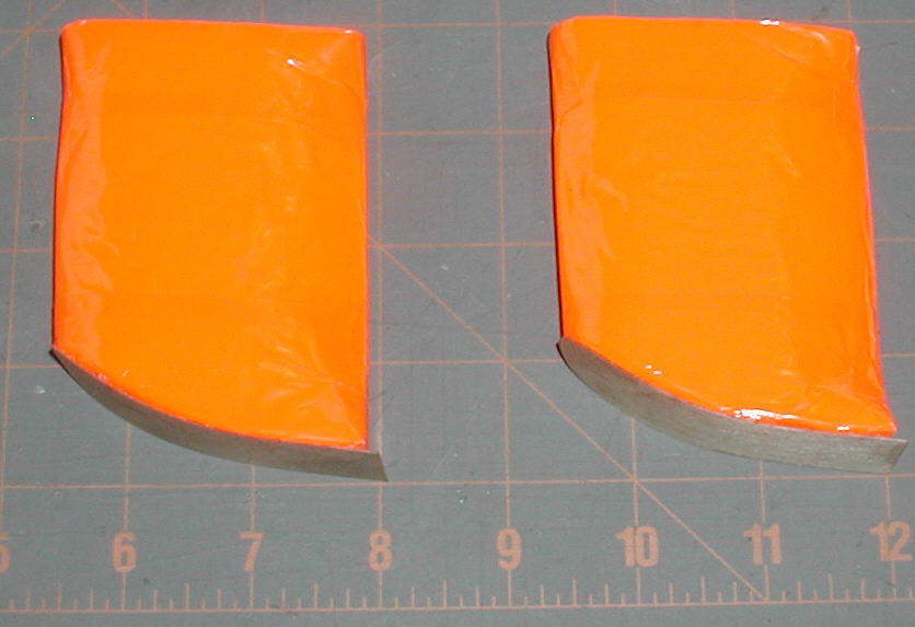 The hull section is made from a block of scrap EPP foam, 1.3# density, left over after cutting slope combat ship fuselages. I cut it to shape on a band saw. There is a layer of 1/64" birch ply on the forward hull to give it good durability for snow & ice handling; there's also a 15 degree side cut away from the bottom hull running surface to allow it to easily get up on step out of the water for easy lift-offs. After a coat of Super 77 spray, colored packaging tape covers, seals, & waterproofs the hull.
