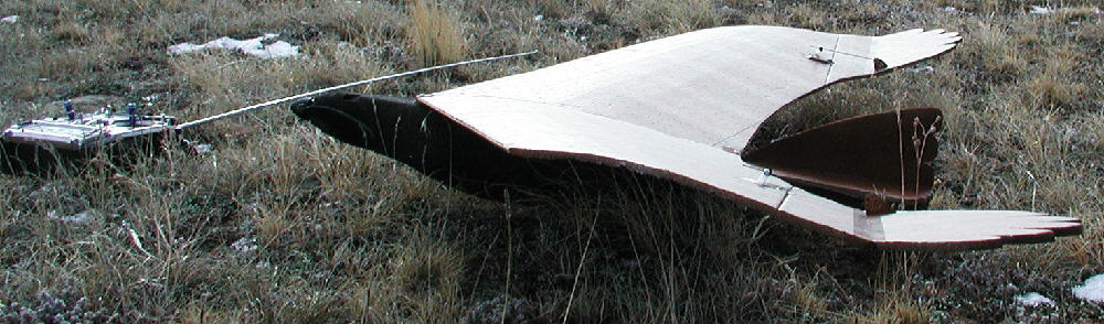 [Above] A photo showing the elevon reflex as it is flying now; handling well!