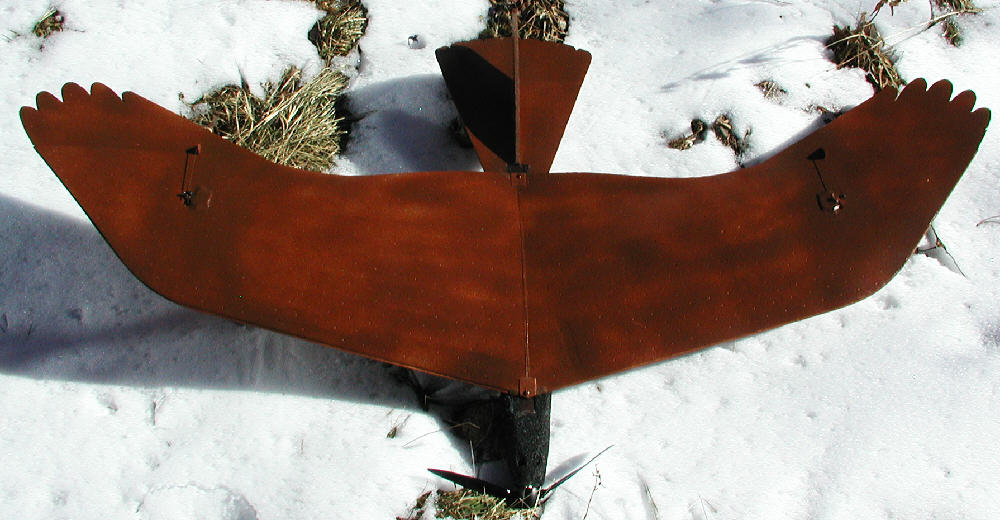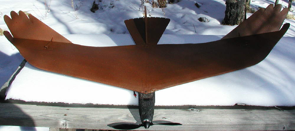 That's one of my initial concepts that I'm investigating in building this prototype. (Reshaping the bird tail from a flat surface to some form of a Vee could also add a bit of stability without loosing the look, if needed.... lots of unexplored options at this point.)