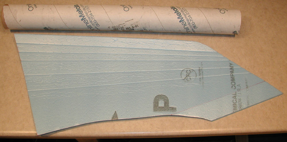 [Above] The undercamber is done next; (I decided to use the creasing method on this wing.) The 4" tube and rolled counter top edge were used to do the shaping; GPW's "Bendfoam Jig" coulds be used if it will handle this long a wing panel