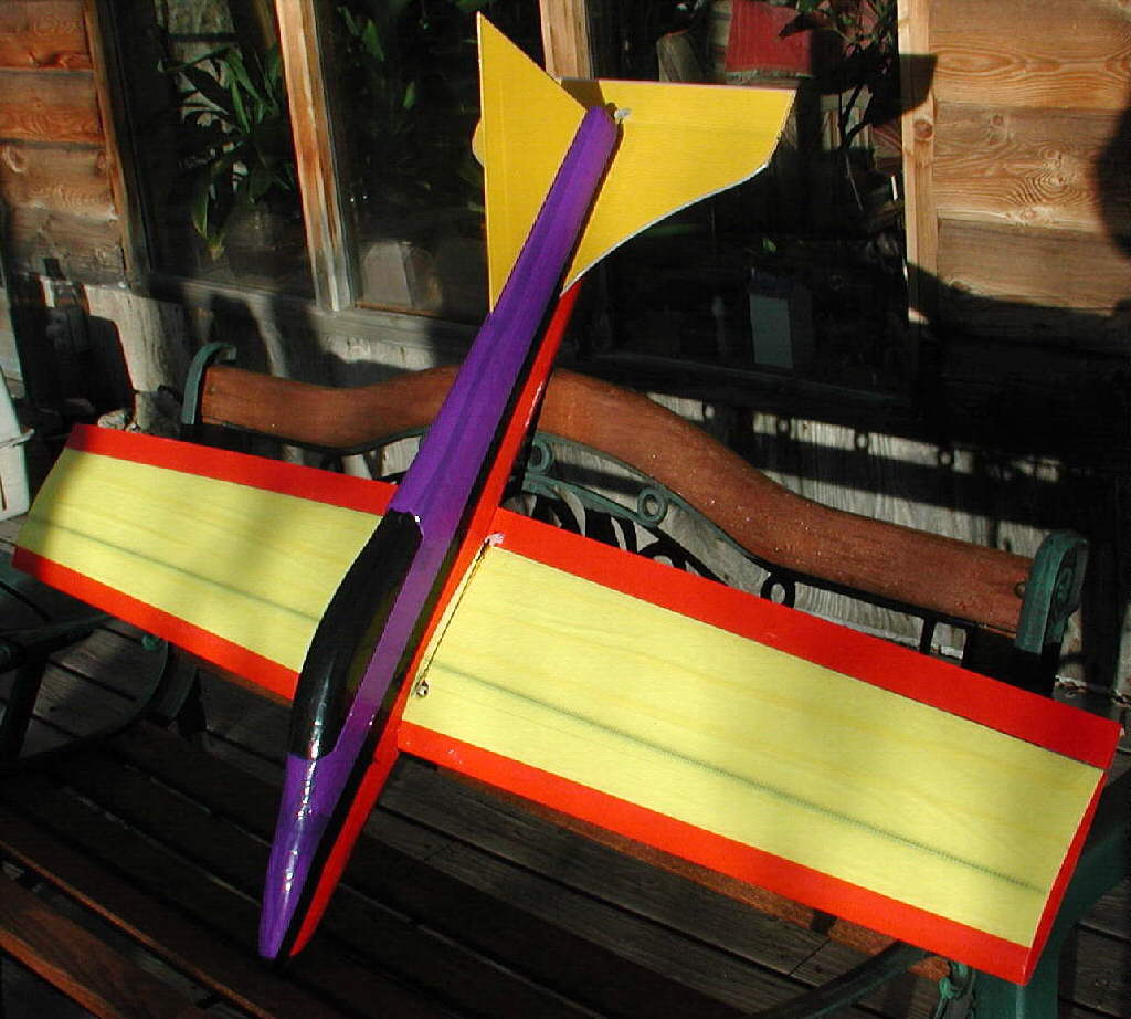 Sloper Configuration minimum wing loading: 8.33 Ounces per square foot; ballast can be added in the battery compatrment. In heavier winds on the slopes, it flies well at 12.5 Oz./Sq. Ft., in the E-powered configuration with the large battery installed