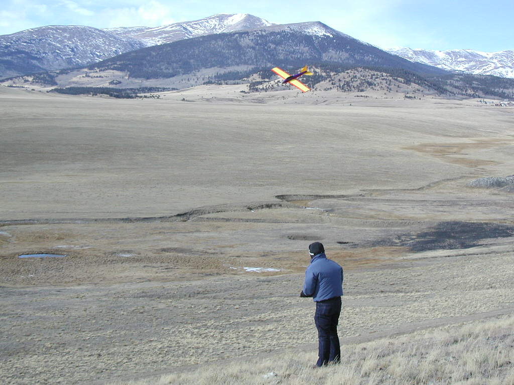 Since it's built entirely of the very resilient EPP foam with Coroplast tail members, it can fly and land *Anywhere* without sustaining noticeable damage, even with rough landing conditions at rocky or sage brush covered sites. The propeller and spinner are the most vulnerable aspect of this design, and when set up with a folding prop, it should hold up very well in most reasonable landing conditions. A folding prop is definitely appropriate! It's likely most suceptible to taking some damage when engaged in 'Powered Slope Soaring", when landing on rocky landing sites. We fly some of those up here in the Colorado Rockies!