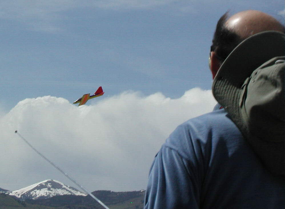 Above is Mark Stewart flying his VIKING 60 on the slope at LOOKOUT POINT on May 31st, 2004. He flew his first flights on KING the day before, and emailed me the following brief comments on the following morning: